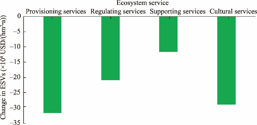 | Ecosystem service | Ecosystem function | Value of ecosystem functions (×108 USD/(hm2·a)) | |||